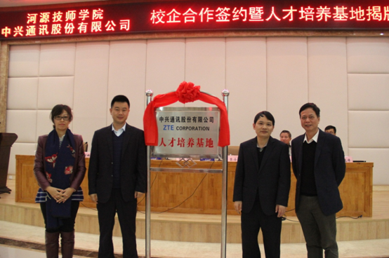 儀式現(xiàn)場,我院與中興通訊簽訂了校企合作協(xié)議。市人社局副局長、黎海波院長和中興通訊股份有限公司朱林林、常麗娜一起為人才培養(yǎng)基地揭牌。