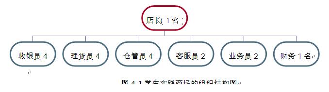 2009年下半年,河源技師學(xué)院與中國移動(dòng)河源分公司合作在校建立了“學(xué)生實(shí)踐商場”,該實(shí)訓(xùn)平臺(tái)主要提供給電子商務(wù)一年級(jí)學(xué)生,完成線下營銷技能的訓(xùn)練。學(xué)生實(shí)踐商場的商品齊全,其管理及運(yùn)作過程完全由學(xué)生來完成,指導(dǎo)老師根據(jù)制定的實(shí)訓(xùn)任務(wù)對(duì)學(xué)生進(jìn)行輔導(dǎo),以達(dá)到預(yù)定的實(shí)訓(xùn)效果。學(xué)生實(shí)踐商場的運(yùn)作過程也是模擬現(xiàn)實(shí)中超市的運(yùn)作標(biāo)準(zhǔn)來執(zhí)行,包括實(shí)訓(xùn)崗位、崗位職責(zé)、管理制度等。學(xué)生實(shí)踐商場的組織結(jié)構(gòu)圖及實(shí)訓(xùn)項(xiàng)目流程圖分別如圖4-1、圖4-2: