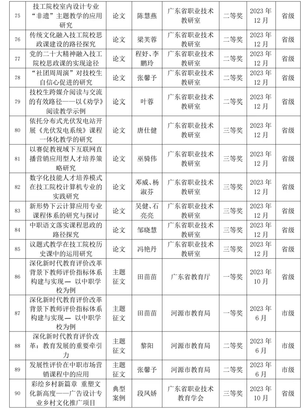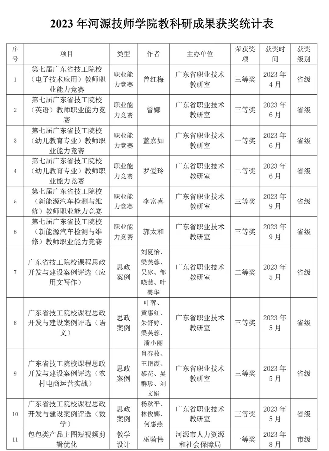 2023年河源技師學(xué)院教科研成果獲獎(jiǎng)統(tǒng)計(jì)