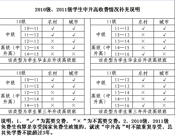 2. 城市戶籍學(xué)生就讀“中升高”高級(jí)班,就讀中級(jí)班時(shí)已繳交了一、二、三學(xué)年學(xué)費(fèi)的,則只需繳交高級(jí)班第二學(xué)年學(xué)費(fèi);就讀中級(jí)班時(shí)已繳交了一、二學(xué)年學(xué)費(fèi)的,則需繳交高級(jí)班一、二學(xué)年學(xué)費(fèi)。