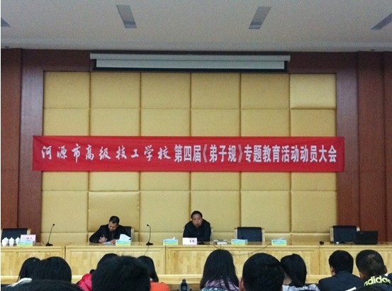 11月28日下午,我校在培訓(xùn)樓講學(xué)廳舉行第四屆《弟子規(guī)》專題教育活動動員大會。張海鋒副校長、學(xué)生科黃志平科長、各教學(xué)部副主任及全體班主任參加了會議。