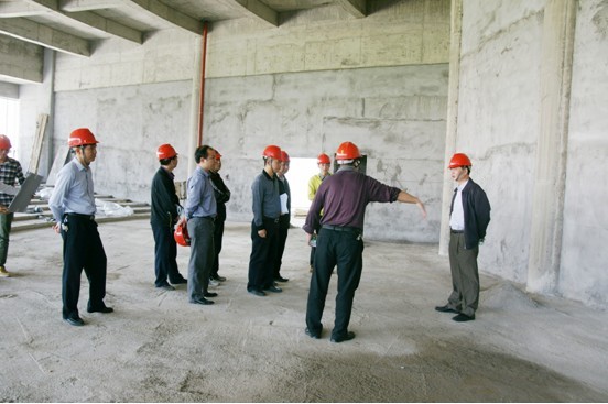 黎海波校長一行對圖書館工地進行逐層視察,詳細詢問工程的進度、工程所用的材料以及其性能,著重強調(diào)材料選用的安全性和環(huán)保性。在了解了圖書館設(shè)施的具體布局和用途后,領(lǐng)導(dǎo)們還重點討論了圖書館講學(xué)廳的裝修細節(jié)問題,要求一定要保證設(shè)計的合理、美觀和大方。