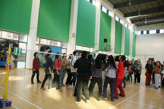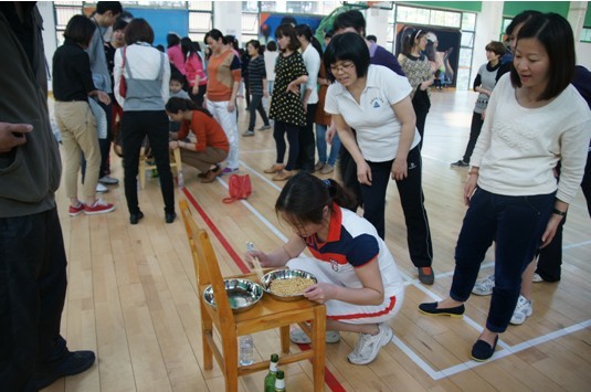 (圖三)后勤組的女教職工們正在參加“丟筷子”比賽