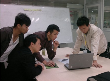 (圖一)校企雙方討論項(xiàng)目研發(fā)設(shè)計(jì)方案