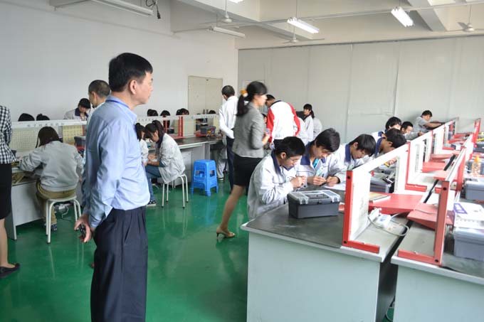 (圖二)黎海波校長一行正在參觀成都市技師學院電子實訓室