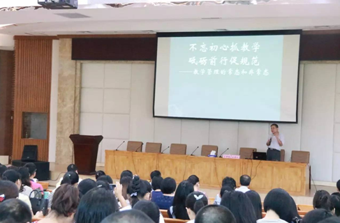 丁爭鳴校長循循誘導,結(jié)合理論知識和教學實踐經(jīng)驗,分別詳細講解了教務科、教研室、督導室、教學系、教研組等科室(部門)教學管理的常態(tài)和非常態(tài)內(nèi)容。丁校長還分析了教師的教學規(guī)范,從老師們的日常教學行為,包括備課、上課、教學反思等進行了指導,寄語老師們“做最好的自己”。