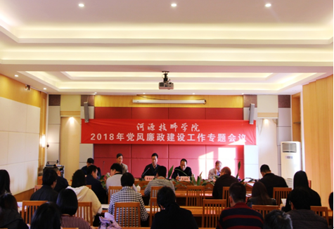 2018年1月20日下午,我院黨總支在一號樓大會議室召開黨風廉政建設工作專題會議。學院領導班子、中層管理干部(含副職)及教學系正副主任參加會議,專題研究部署2018年有關黨風廉政建設工作任務。