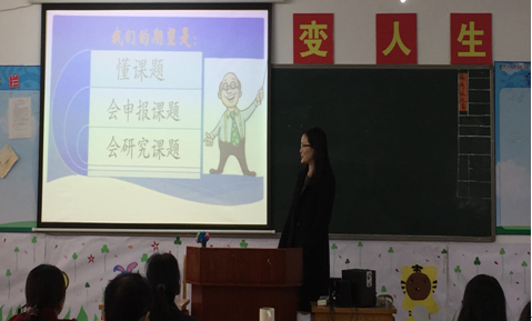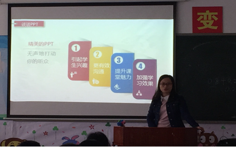 培訓(xùn)中,張崳玉老師通過深入淺出的講解,讓教師們了解并掌握如何選題、如何申報(bào)、如何調(diào)查研究;羅衛(wèi)職老師通過分享自身的經(jīng)歷,為老師們總結(jié)了做一名好教師的標(biāo)準(zhǔn)和經(jīng)驗(yàn);劉智慧老師結(jié)合自己平時(shí)制作課件的情況,為老師們梳理出高效制作課件的流程和方法途徑,并進(jìn)行實(shí)例演示和資源共享;謝麗娟老師則從心理學(xué)專業(yè)角度,為老師們指明了教師心理壓力的來源,并提出相應(yīng)減壓的方法。
