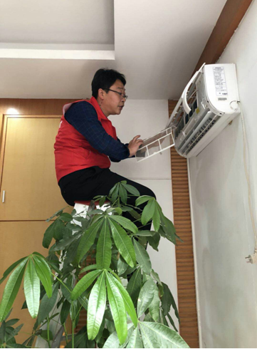 (圖二)黨員教師正在清洗掛式空調(diào)