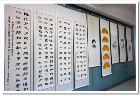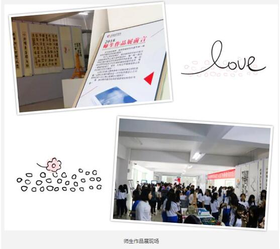 圖書館收集師生優(yōu)秀作品在二樓內(nèi)大廳展示。此次展覽共有作品195幅,其中書畫作品37幅、書簽設(shè)計42幅、海報設(shè)計41幅、服裝畫75幅,現(xiàn)場還展示了多件幼兒教育專業(yè)學(xué)生的手工藝作品。