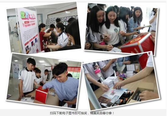 圖書館專設(shè)大海報,介紹各類電子書籍,通過掃碼或鏈接網(wǎng)址,即可輕松下載電子圖書隨心看,現(xiàn)場還可以通過抽獎獲得U盤、小夜燈和自拍桿等精美禮品。
