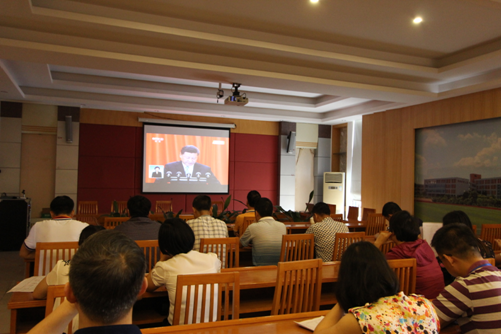 按照省委市委工作要求,我院組織領(lǐng)導(dǎo)干部集中在一號樓大會議室認真收看收聽會議實況,會后及時學(xué)習(xí)討論。