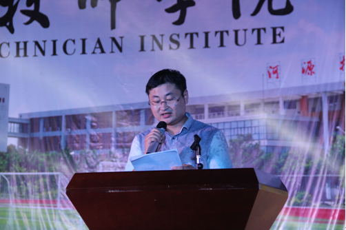(圖一)汽車(chē)技術(shù)系黨支部書(shū)記、系主任石功名宣讀表彰決定