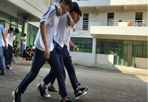 “一二,一二……”,“左右,左右……”,2018年6月11日下午,學(xué)院A棟男生宿舍區(qū)傳來一陣陣規(guī)律而響亮的“口號(hào)”聲。走近一看,參賽的同學(xué)興致勃勃,正在開展“四人五足”活動(dòng)。圍觀的同學(xué)也在一旁為他們鼓勁加油。