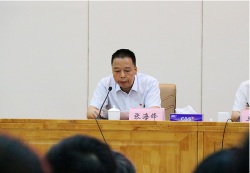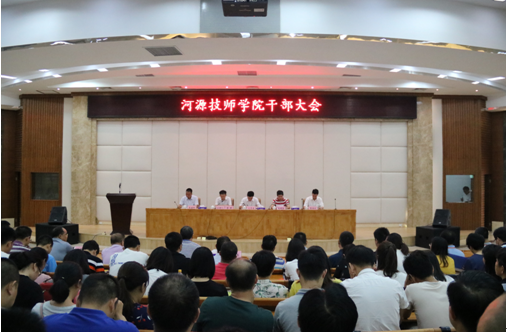 2018年6月15日下午,我院在圖書館報(bào)告廳召干部大會。市政府副市長、市公安局局長范秀燎,市委組織部副部長袁輝強(qiáng),市人社局副局長李君,市人大常委會教科文衛(wèi)僑工作委員會主任、原學(xué)院院長黎海波出席了大會。大會由市人社局副局長李君同志主持,學(xué)院全體在編在崗教職工參加了大會。
