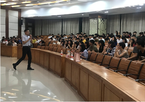 張聰用自身經(jīng)歷為學(xué)生闡述了“選擇一個好的行業(yè),會認(rèn)識很多優(yōu)秀的人,開闊你的眼界”這一道理。他展示了自己公司的一些成長圖片和設(shè)計作品,播放了所在公司策劃的婚禮秀,用通俗易懂、略帶幽默的方式講解了婚慶是怎么樣的一個行業(yè)。他給同學(xué)們提出了幾點建議:一是專業(yè)知識與經(jīng)驗累積尤為重要。二是對日后的工作要有信仰和敬畏之心。三是做現(xiàn)階段作為學(xué)生應(yīng)該做的事,現(xiàn)在所積累、沉淀的東西最后都會成為你最寶貴的財富。