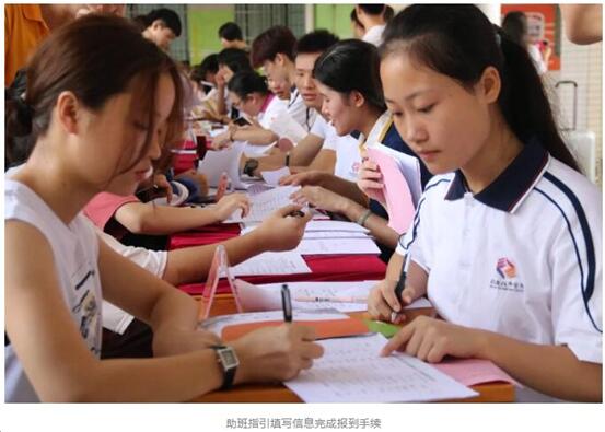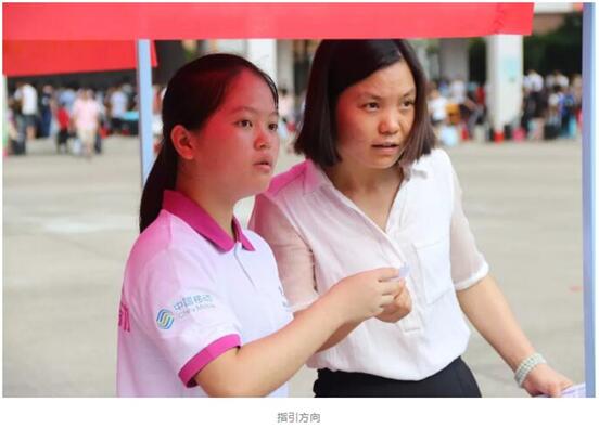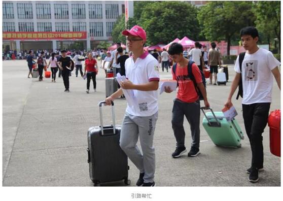 今年迎新志愿者一改往年橙色裝束,以粉色亮相繼續(xù)傳承無私奉獻的志愿者精神。校門口、校道、報到咨詢處、宿舍區(qū)、汽車站迎新點等地方都能看到粉色軍團的身影。
