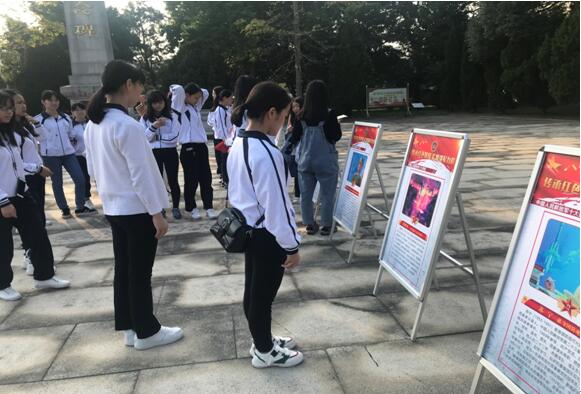 為了深入學(xué)習(xí)貫徹黨的十九大精神和習(xí)近平強軍思想,推動國防教育的普及和深入發(fā)展,提高中職生國防觀念和安全意識,2018年11月26日下午,我院經(jīng)濟(jì)貿(mào)易系組織團(tuán)學(xué)干部到烈士陵園參觀河源市2018年全民國防教育圖片展。
