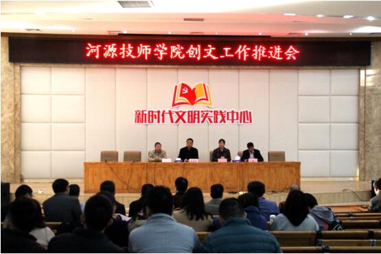 為進一步做好創(chuàng)文工作,為河源創(chuàng)文貢獻力量,2018年12月17日,我院在圖書館報告廳召開創(chuàng)文工作推進會。全體教職工參加了會議。