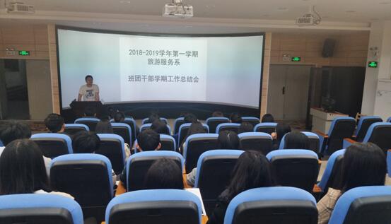 2019年1月9日晚,旅游服務系班團干部期末總結會在3D導游實訓室舉行。本次總結會由旅游服務系副主任陳偉寧主持。