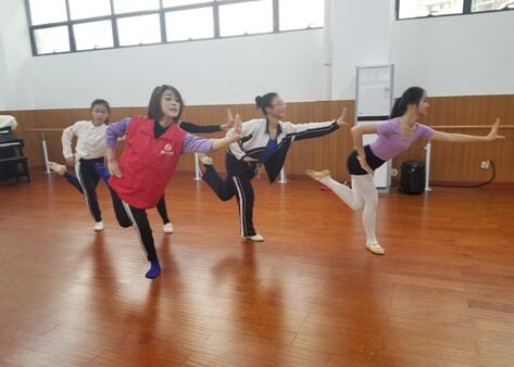 (圖二)翟文老師正在進(jìn)行舞姿示范教學(xué)