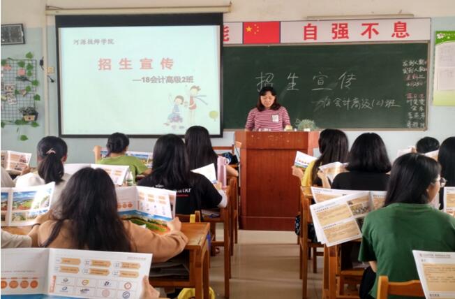 會(huì)后,各班班主任組織“招生宣傳”主題班會(huì),利用班會(huì)課詳細(xì)解說學(xué)院招生學(xué)費(fèi)減免政策、學(xué)院專業(yè)特色、新型實(shí)訓(xùn)設(shè)備、本系專業(yè)招生計(jì)劃以及具體報(bào)名方式、途徑等。