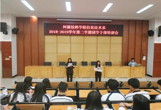 為加強(qiáng)信息技術(shù)系團(tuán)學(xué)干部的溝通交流能力,全面提高團(tuán)干的綜合素質(zhì),信息技術(shù)系于2019年5月6日晚在培訓(xùn)樓講學(xué)廳舉辦了2018-2019學(xué)年第二學(xué)期團(tuán)學(xué)干部培訓(xùn)會(huì)。信息技術(shù)系副主任巫騎偉、李曉聰老師出席,信息技術(shù)系全體團(tuán)學(xué)干部參加了培訓(xùn)。