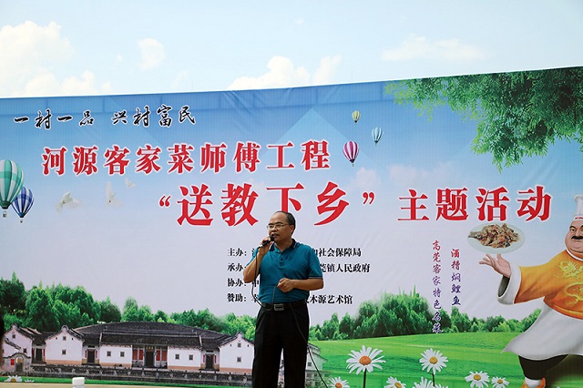 活動伊始,高莞鎮(zhèn)鎮(zhèn)長曾力文致辭,表示客家菜師傅送教下鄉(xiāng)活動對鄉(xiāng)親們是一件大好事,是為年輕的學員朋友掌握客家菜烹飪技術(shù),為今后就業(yè)創(chuàng)業(yè)打下基礎(chǔ)的大實事。河源技師學院副院長劉俊侃講話,表示“客家菜師傅送教下鄉(xiāng)”是推動鄉(xiāng)村振興發(fā)展的重要舉措,我院教師將以精湛的技藝為各村挖掘出客家特色菜,并將其傳承創(chuàng)新。