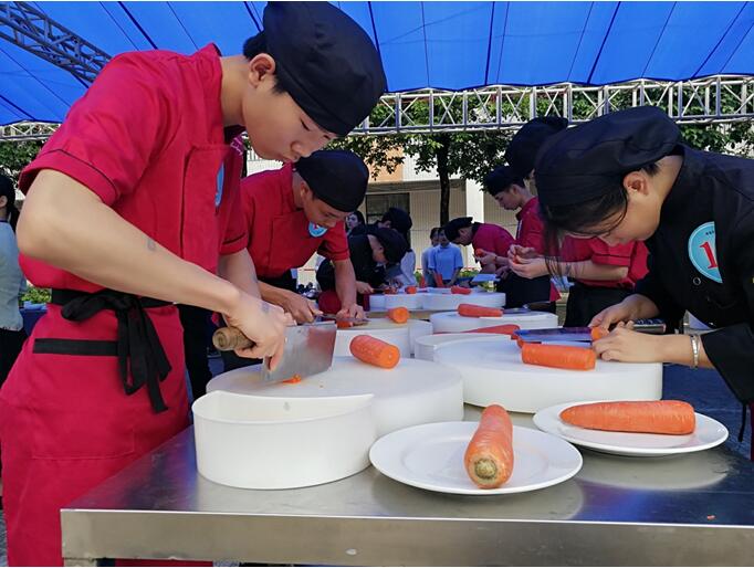 (圖二)烹飪專業(yè)“精細(xì)刀功”競(jìng)賽項(xiàng)目比賽現(xiàn)場(chǎng)