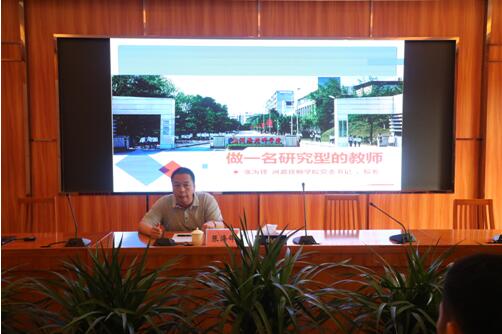 會上,張海鋒院長就2019年度河源市哲學(xué)社會科學(xué)規(guī)劃項(xiàng)目申報(bào)發(fā)表動員講話。他強(qiáng)調(diào),各教研組長要以課題為平臺,引領(lǐng)教研教改,營造濃厚的研究氛圍,在教研的土壤上結(jié)出豐碩成果。接著,張海鋒院長作了主題分享,他結(jié)合技工院校當(dāng)前的實(shí)際問題,從宏觀到微觀、從理論到實(shí)踐地論述了“如何成為一名研究型老師”。分享會上,張海鋒院長以一名老教師的身份豪無保留地向年輕教師傳授教育、教學(xué)、教研經(jīng)驗(yàn),分享其獨(dú)特觀點(diǎn),敦促老師們能成為具有反思力的能師、大師,期望老師們能潛心教育,從講臺走上講壇,從學(xué)校走出河源,走向廣東,走向全國。