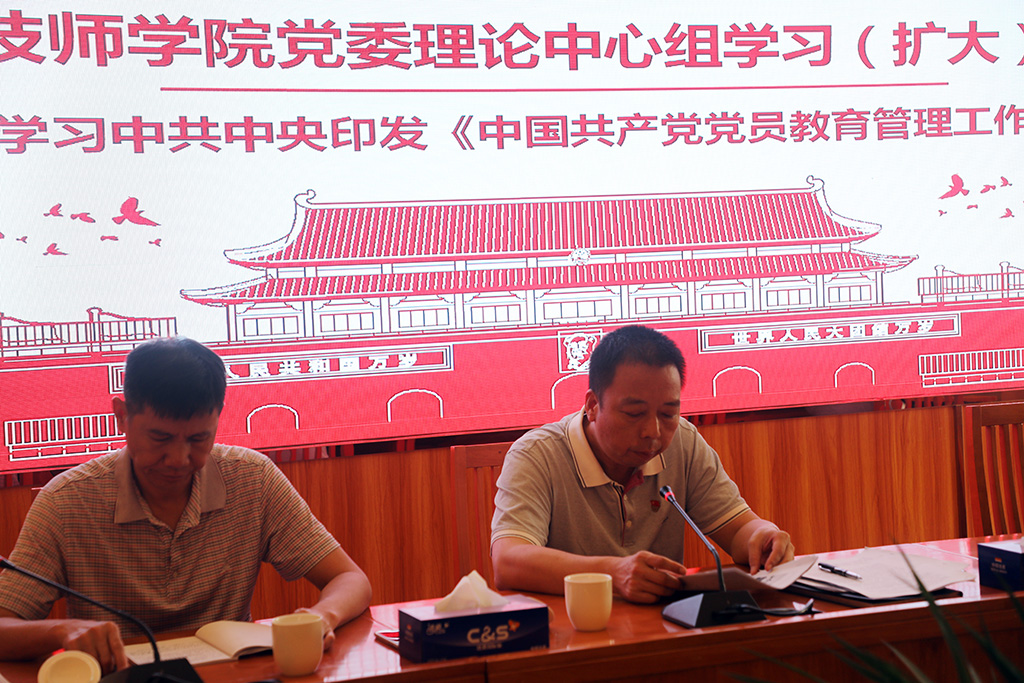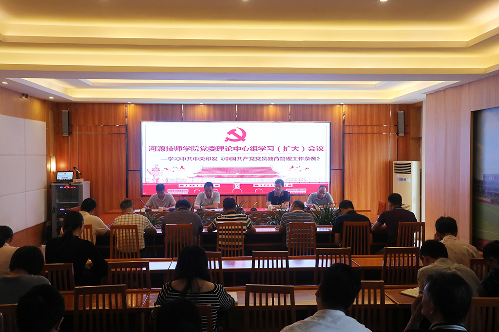 為了進(jìn)一步加強(qiáng)黨員教育管理工作,激發(fā)黨員教師的干勁,建設(shè)一支信念堅(jiān)定、業(yè)務(wù)精湛的黨員教師隊(duì)伍。2019年5月29日上午,我院召開(kāi)理論中心組學(xué)習(xí)(擴(kuò)大)會(huì)議,集體學(xué)習(xí)《中國(guó)共產(chǎn)黨黨員教育管理工作條例》。學(xué)院黨委會(huì)委員、各黨支部書(shū)記、中層管理干部和各教學(xué)系正、副主任參加了會(huì)議。