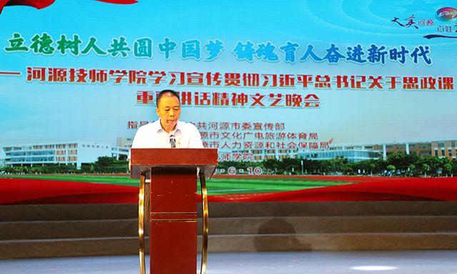 為深入學(xué)習(xí)貫徹習(xí)近平新時(shí)代中國(guó)特色社會(huì)主義思想,習(xí)近平總書記3·18學(xué)校思政課教師座談會(huì)重要講話精神,6月10日晚,我院在河源市文化館舉行了“立德樹人共圓中國(guó)夢(mèng) 鑄魂育人奮進(jìn)新時(shí)代”專場(chǎng)文藝晚會(huì)。市人社局副局長(zhǎng)
