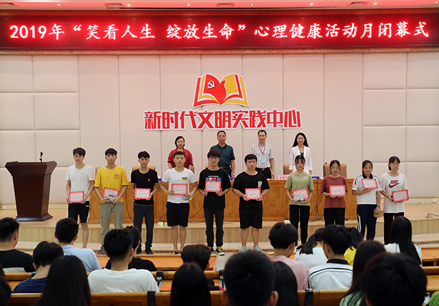 2019年6月11日下午,我院在圖書館報告廳舉行2019年“笑看人生•綻放生命”心理健康活動月閉幕式。學(xué)院院長張海鋒、學(xué)生科科長黃志平、心理老師馮艷丹出席,學(xué)院400多名學(xué)生代表參加了儀式。