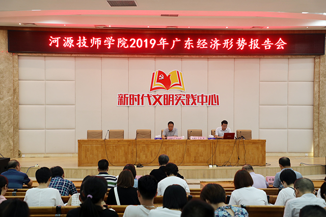 根據(jù)省委部署要求和市委工作安排,2019年6月24日下午,我院在圖書館報告廳舉行了2019年廣東經(jīng)濟形勢報告會。會議邀請河源職業(yè)技術(shù)學(xué)院工商管理學(xué)院副院長、管理學(xué)副教授張穎作專題報告,幫助教職工正確認識和把握當前廣東經(jīng)濟形勢,進一步增強實現(xiàn)“四個走在全國前列”目標的信心和干勁。