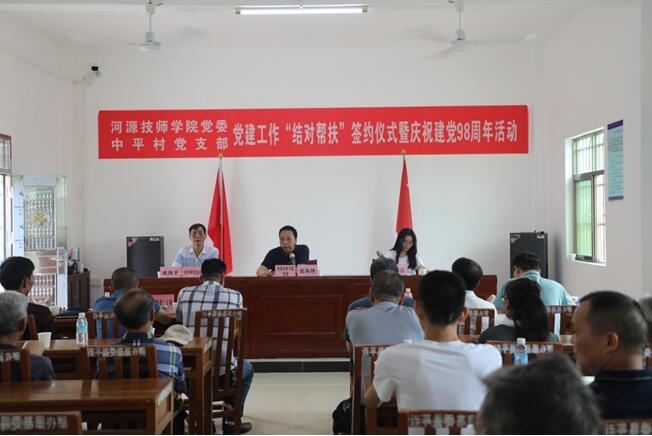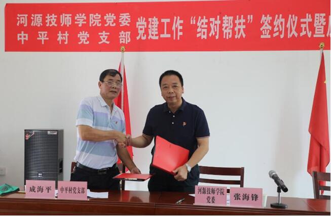 為進(jìn)一步開展黨組織結(jié)對幫扶共建工作,堅決打贏脫貧攻堅戰(zhàn),2019年7月1日上午,我院黨委與中平村黨支部黨建工作“結(jié)對幫扶”簽約儀式在中平村村委會舉行。