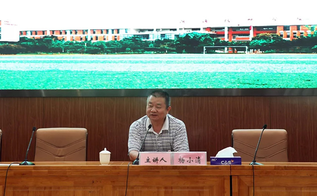 培訓(xùn)由惠州學(xué)院原副院長楊小清教授主講。楊小清教授引經(jīng)據(jù)典、激情澎湃地用哲學(xué)思想向教師闡釋了知行合一的內(nèi)涵,教育老師們要格物致知、知行合一,不忘初心,牢記使命,爭做新時期“四有”教師。接著,楊小清教授結(jié)合曾國潘、毛澤東等案例闡述了“理想信念”的重要性,他的教育智慧、育人金句贏得教師的掌聲。