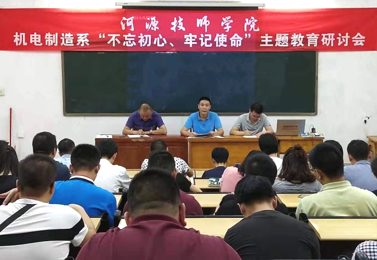 為貫徹落實(shí)學(xué)院黨委關(guān)于開(kāi)展“不忘初心、牢記使命”主題教育的部署要求,2019年10月14日下午,機(jī)電制造系黨支部全體黨員在8號(hào)樓104開(kāi)展主題教育研討會(huì)。會(huì)議由機(jī)電制造系黨支部書(shū)記龍衛(wèi)軍同志主持。