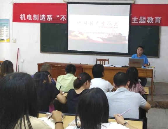 為貫徹落實(shí)好學(xué)院黨委關(guān)于開展“不忘初心、牢記使命”主題教育的部署要求,機(jī)電制造系黨支部于2019年10月14日在8號(hào)樓104室開展“不忘初心、牢記使命”專題黨課。機(jī)電制造系黨支部書記龍衛(wèi)軍同志為機(jī)電制造系黨支部全體黨員和團(tuán)學(xué)會(huì)干部共40余人上了一堂別開生面的專題黨課。