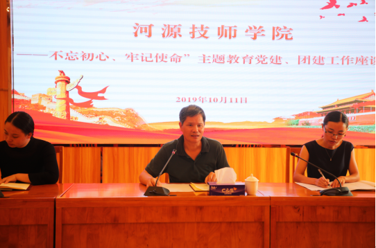 為深入開展“不忘初心、牢記使命”主題教育活動,落實學(xué)院黨建帶團建的任務(wù),加強黨建帶團建的意識形態(tài)工作,筑牢學(xué)生思想防線。2019年10月11日,我院在行政樓大會議室召開“不忘初心、牢記使命”主題教育黨建帶團建座談會。會議由學(xué)院副院長張運達同志主持,學(xué)院團委書記駱曉紅、學(xué)院督導(dǎo)室副主任李輝、學(xué)生科副科長柳鐵非以及各系黨支部書記和團總支書記參加了會議。
