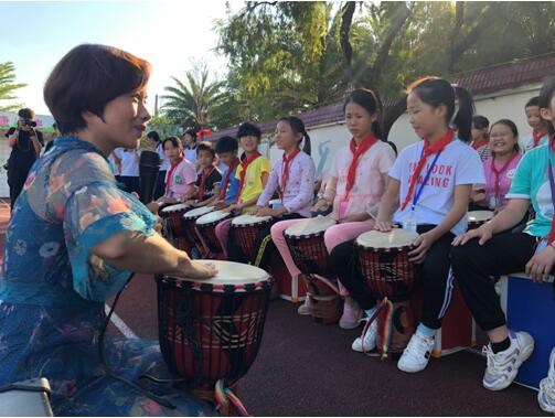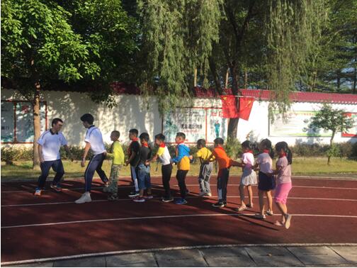 走進(jìn)上村小學(xué),學(xué)院專業(yè)教師蘇素芳送教下鄉(xiāng),與上村小學(xué)的小朋友們互動教學(xué),打非洲手鼓,唱紅歌等。在校園的另一邊,青年團(tuán)員與小朋友們玩游戲,老鷹抓小雞、蘿卜蹲等游戲。一首首耳熟能詳?shù)募t歌和歡聲笑語在校園中此起彼伏,激情澎湃,久久回蕩,激發(fā)了師生以革命先輩為榜樣精忠報國的夙愿。