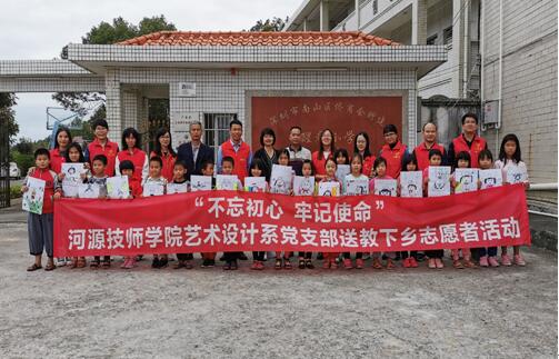 為扎實(shí)開展“不忘初心,牢記使命”主題教育,2019年10月28日,藝術(shù)設(shè)計系黨支部組織系部黨員教師到河源市黃田鎮(zhèn)醒群村醒群小學(xué)開展送教下鄉(xiāng)志愿服務(wù)活動。