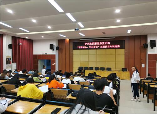 按學(xué)院黨委關(guān)于扎實(shí)抓好基層黨支部“不忘初心、牢記使命”主題教育的工作部署,為深入學(xué)習(xí)貫徹習(xí)近平新時(shí)代中國(guó)特色社會(huì)思想,2019年10月31日晚,旅游服務(wù)系黨支部在培訓(xùn)樓講學(xué)廳舉行了“不忘初心、牢記使命”主題教育知識(shí)競(jìng)賽活動(dòng)。