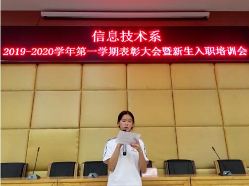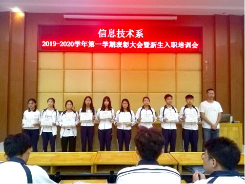 為表彰先進,信息技術(shù)系于2019年11月5日晚在培訓樓講學廳舉行了2019-2020學年第一學期優(yōu)秀團學干部表彰大會。信息技術(shù)系團總支書記李曉聰出席,2018級、2019級全體團學干部和助理班主任參加了會議。
