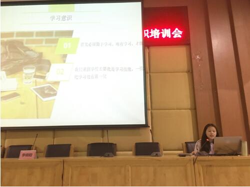 團學書記助理劉碧霞同學分享了自己的工作經(jīng)驗,就各部門的工作職責、團學干部的具體工作內(nèi)容和要求進行了培訓(xùn)。她強調(diào)一個優(yōu)秀的團學干部要時刻端正思想,培養(yǎng)良好的行為習慣,提升自身綜合能力。希望團學成員能互幫互助,共同進步。