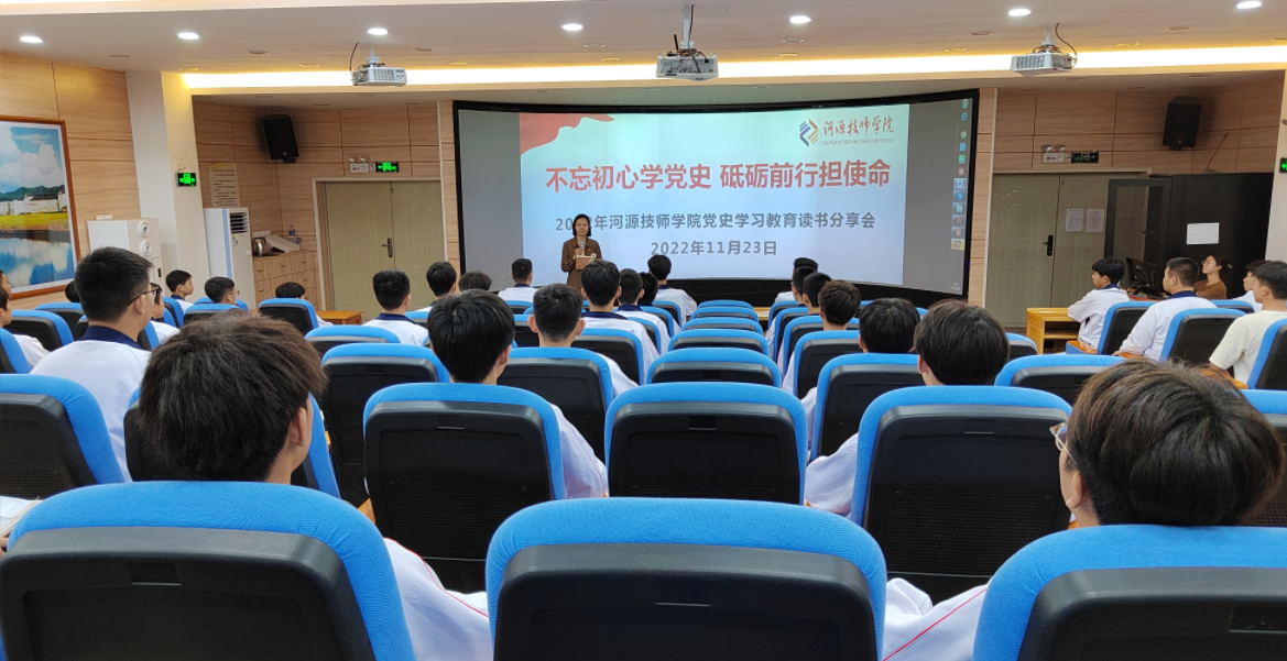 學(xué)史明理、學(xué)史增信、學(xué)史崇德、學(xué)史力行是開展黨史學(xué)習(xí)教育的重大意義。11月23日,我院在E棟階梯教室開展了“不忘初心學(xué)黨史,砥礪前行擔(dān)使命”的黨史學(xué)習(xí)教育讀書分享會(huì)。