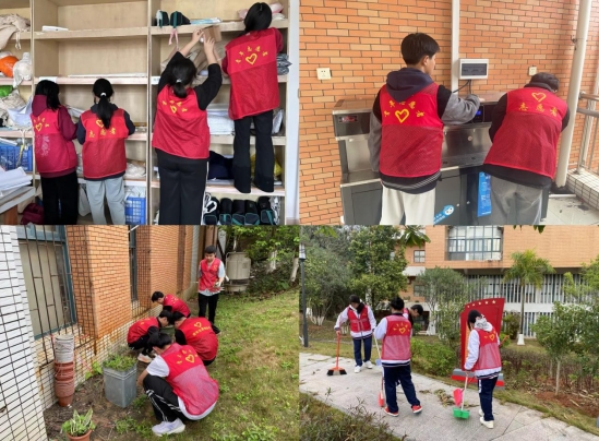 志愿者們身著紅馬甲,精神飽滿地投入到衛(wèi)生清潔工作中,對校園各個區(qū)域的衛(wèi)生進行了全面的整治,尤其是針對教學樓衛(wèi)生死角、草坪的雜草、校道的落葉等雜物發(fā)起了“總攻”。