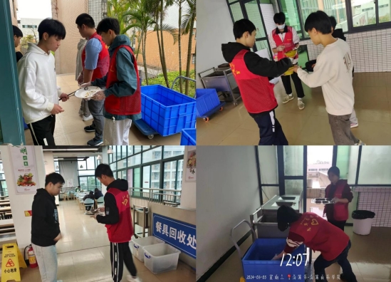 此外,學生社團志愿者成了學校飯?zhí)美镆坏懒聋惖摹帮L景線”,開展了“飯?zhí)梅罩堋敝驹富顒?。志愿者們有的負責分發(fā)飯菜、有的進行衛(wèi)生打掃、有的負責餐具回收等。在各個環(huán)節(jié)中,志愿者們都展現(xiàn)出了高度的責任感和敬業(yè)精神,贏得了師生們的一致好評。