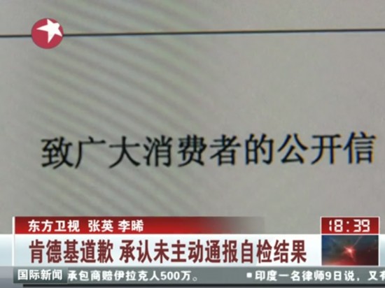 肯德基就速生雞事件道歉承認未主動通報自檢結(jié)果