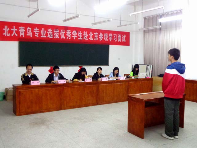 夢(mèng)想北京 暢想未來——我校北大青鳥專業(yè)選拔優(yōu)秀學(xué)生赴北京參觀學(xué)習(xí) 為選拔北大青鳥專業(yè)優(yōu)秀學(xué)生參加第二屆北大青鳥文化校園行活動(dòng),4月22日晚,計(jì)算機(jī)教學(xué)部在培訓(xùn)樓舉行面試會(huì)。計(jì)算機(jī)教學(xué)部朱少威主任和秦文文等四位專業(yè)老師擔(dān)任評(píng)委,20個(gè)學(xué)生參加了面試。...