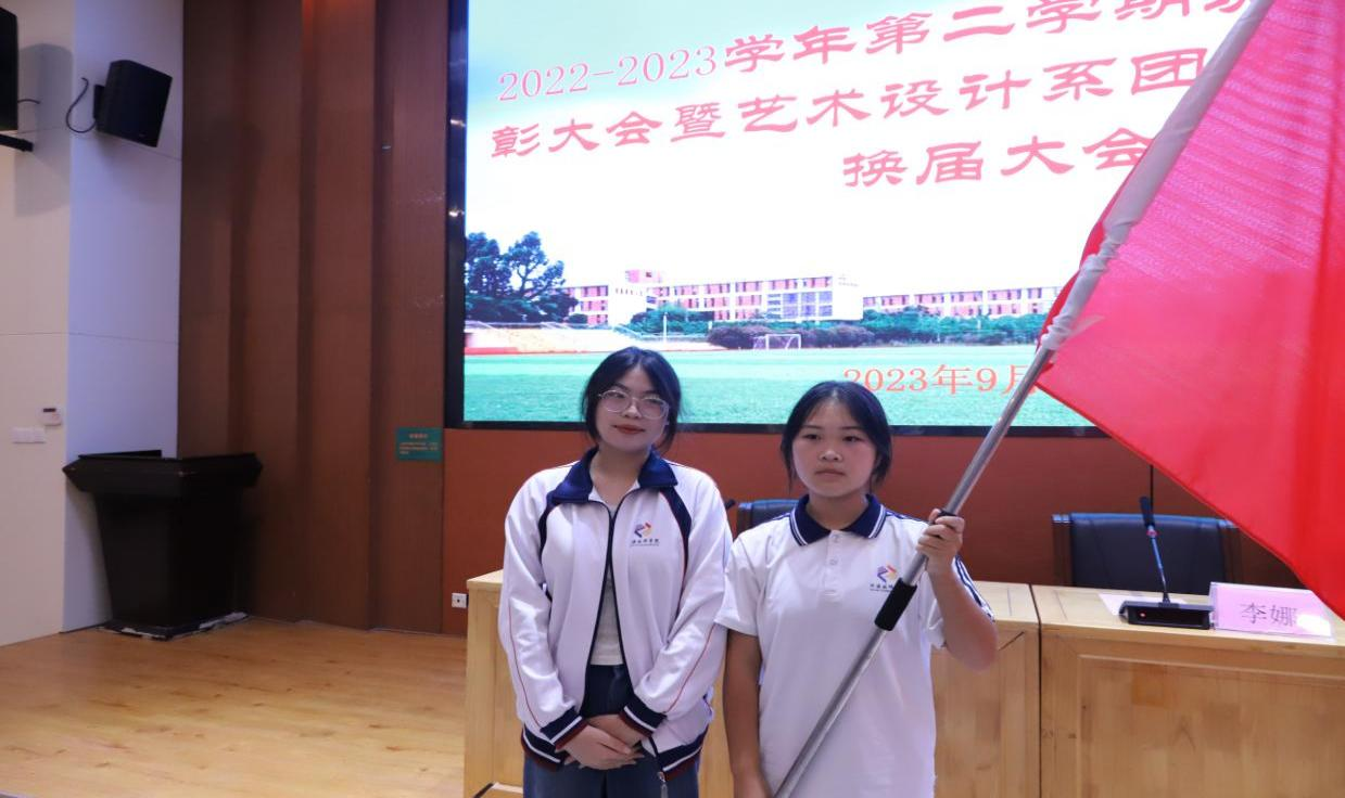彭志文書記宣讀新一屆團總支學(xué)生會主席團成員名單以及各部門部長名單并舉行新一屆團總支學(xué)生會交接旗儀式。
